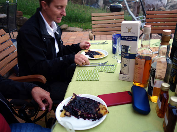 der Nachtisch: Pfannkuchen mit Schwarzbeeren - von den Hausleuten selbst gepflückt