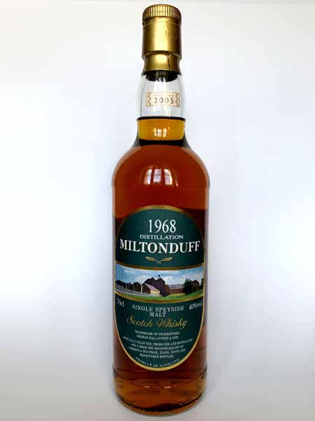Region Speyside (nördlich) Miltonduff G&M Rare Vintage, 37 Jahre 1968-2005, 40% Der Duft steigt mächtig in die Nase, sehr lebendig und trotz der 'nur' 40% kein bischen müde. OBF und Pappe, ein paar dezente Mottenkugeln, viel Bienenwachs und Möbelpolitur, Orangenöl und feines Leder. Dazu ein schwerer Duft von Feuerzangenbowle, Kandiszucker, Honig, Karamell, Rumrosinen, dunklen Beeren und schokolierten Kirschen. Mir der Zeit ein wenig trockener und würziger, knuspriges Sauerteigbrot, Piment und Anis, Aachener Printen. Im Geschmack noch cremig, wird aber etwas herber als vermutet, schwarzer Tee, Kakaonips, Paranüsse, Bittermandel, Orangenöl und aromatisches Palisanderholz. Im kräuterwürzigen Nachklang verschwindet auch die Süße nicht ganz, es bleiben Milchschokolade, Marzipan und Jaffa-Kekse. |