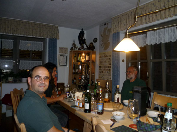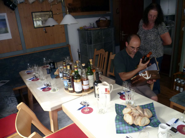 Wir trafen uns wieder einmal in geselliger Runde: Am 09.08.2014 ab 18:30 Uhr bei Winni und Ruth in der bekannten Lokalität. Erfreulicherweise konnten wir zwei "Neulinge" aus unserer Gemeinde - nicht in Sachen Whisky, aber in unserer Runde - begrüßen. Durch ein paar kurzfristige Absagen kamen wir zu einem weniger beengten Sitzen in unseren Räumlichkeiten. Die angebotenen Whiskies konnten sich sehen lassen. Darunter eher seltene Abfüllungen von Port Ellen, Rosebank, Tomintoul und der Whisky of GDR!