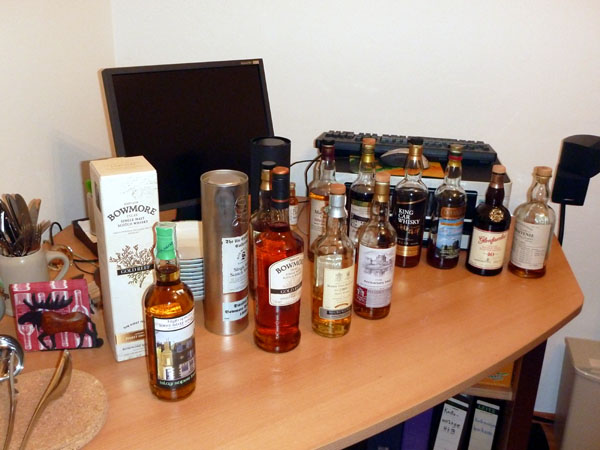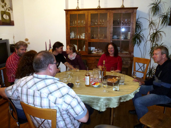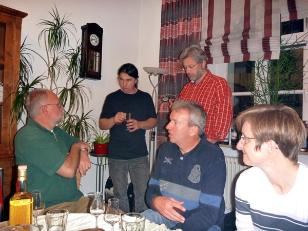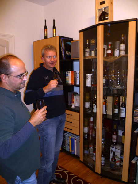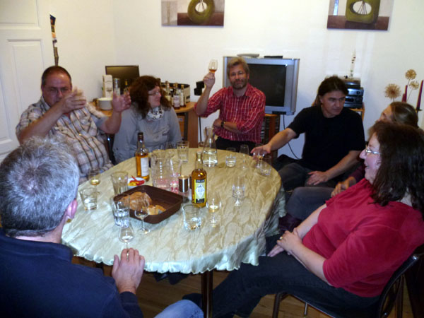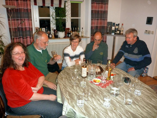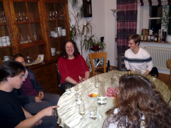 Das war er nun, unser letzter Stammtisch in diesem Jahr! Diesmal gab es von Natur aus nur "Insel-Whiskies", denn wir trafen uns zu diesem Ereignis einmal bei Kilian und Alex in Regensburg. Nachdem die Beiden auf der Unteren Wöhrd-Insel wohnen, werden zwangsläufig aus allen angebotenen Whiskies automatisch Insel-Whiskies;-). Nachdem es alle trotz Bahnstreiks pünklich zu Alex und Kilian geschafft hatten, stand einem genußvollem Abend nichts mehr im Wege. Das Angebot war riesig und die Auswahl für den Einzelnen/die Einzelne nicht einfach. Schon der warm-up Dram war einzigartig: Ein 30 Jahre alter Sherry - wer hat sowas schon mal getrunken...! Auch die Whiskies ließen keine Wünsche offen. Von den Lowlands bis nach Islay war alles vertreten. Manchmal sogar mehrfach, was zu spannenden Vergleichen führte. Die warme Zwischenmahlzeit - Beef mit Kaffee und Kürbis an Nudeln - und als Dreingabe noch ein warmer Zwiebelkuchen war mit Hingabe zubereitet, äußerst schmackhaft und demzufolge schnell verspeist. So vorbereitet ging es guten Mutes in die 2. Runde.