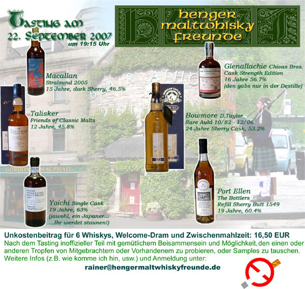 Rückblick -- 2. Henger Maltwhisky Freunde Tasting -- am 22.09.2007