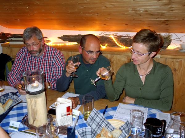 Das war unser Blind-Tasting am 28.Oktober 2017. Wir waren mal wieder auf der Gradl-Alm, nachdem die bei Winni + Ruth ferienhalber einquartierte Katze bei einigen Gästen zu Problemen geführt hätte. Das Gewölbe war leider schon reserviert, aber auch im "Oberstübchen" kamen wir nach gewissen 'Umbauten' gut zurecht.