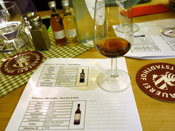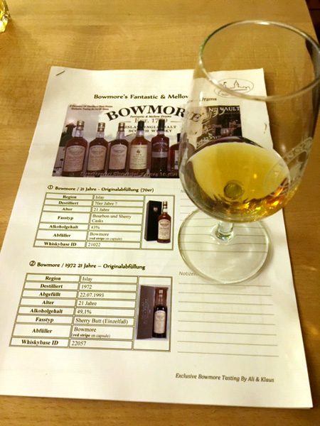 Ja, das war doch mal eine Veranstaltung, die einfach klasse organisiert war und keine Wünsche unberücksichtigt ließ! Gemütliches Ambiente, Essen und Getränke im Altstadthof lecker, die Präsentation und Moderation der beiden Veranstalter gekonnt und sehr informativ - und zu den Whiskys: Alle auf höchstem Niveau, nur der MoS war nicht ganz so 'amazing'...! Wir konnten die geschmackliche Entwicklung der Bowmore-Destillerie aus den 70ern über die 80er bis hin zu den 90ern (noch)einmal erleben und geniessen. Ein großes Dankeschön an die Organisatoren, das war Spitze!