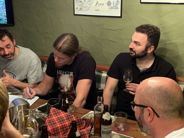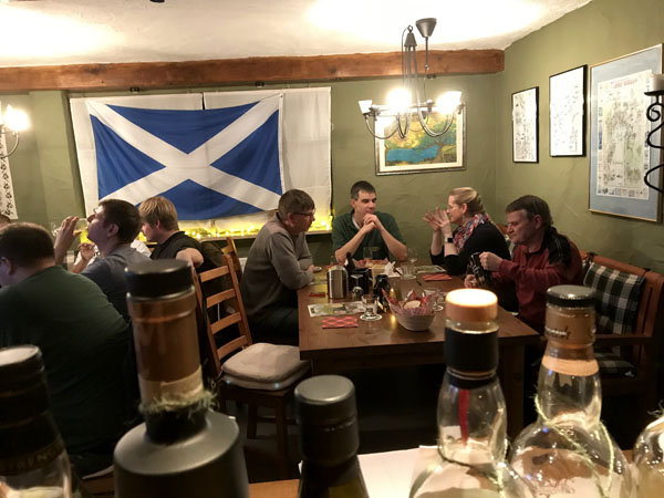 Und schon ist es wieder Vergangenheit, unser 20. offizielles Tasting in Heng. Es hat wieder Freude bereitet - uns und unseren Gästen. Die angebotenen Abfüllungen konnten begeistern, nur der Mortlach hinkte ein wenig hinterher - wider Erwarten. Durchgefallen und nur von wenigen genossen war dann das "Gulden Draak"-Laphroaig Bier zur Halbzeit. Den Geschmack des Essens hat das aber nicht beeinflusst, es war mit hoher Taktrate leergefuttert, desgleichen der Cranachan-Nachtisch. Mit der Möglichkeit, den einen oder anderen Whisky noch zu probieren, ging der Abend dann gemütlich zu Ende.