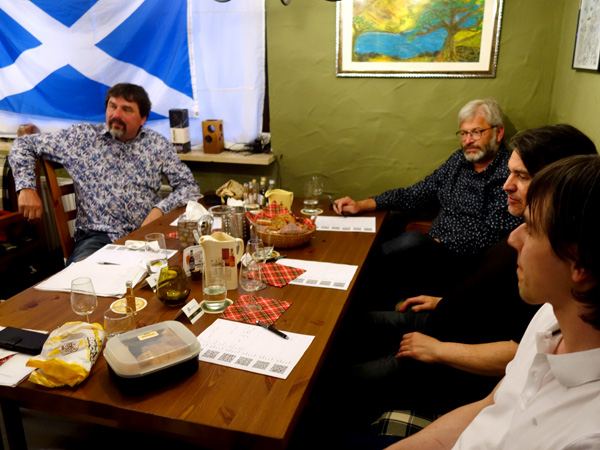 Das Warten hat sich gelohnt! Es wurde wieder einmal ein genußvoller Abend, den wir mit unseren Gästen im Partykeller von Evi und Heinz erleben konnten. Die Whiskys gaben so manches Rätsel auf, es gab aber auch den einen oder anderen Treffer. So wurde es ein kurzweiliger Abend, an dem alle Abfüllungen überzeugen konnten. Zur rechten Zeit ein warmes Essen machte wieder fit für die zweite Runde und auch im Nachgang gab es manch edlen Tropfen zu verkosten - von uns, wie auch von unseren Gästen. Gut gelaunt krochen wir in den Morgenstunden dann ins Bett. Das Line-up im einzelnen: